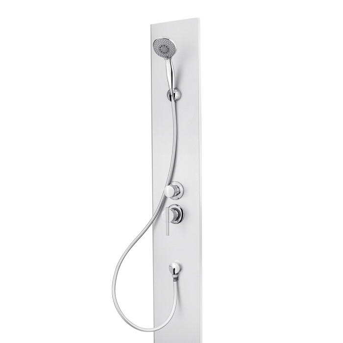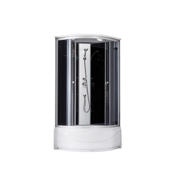 Душовий бокс Kroner KRP Enzo - SD.C.T.G.90x90 см - це ідеальне рішення для створення комфортного та сучасного душового простору у вашій ванній кімнаті. Бокс має розміри 90x90 см і форму чверті кола, що робить його ідеальним варіантом для ванних кімнат обмеженого простору. Конструкція дверей - розсувна, матеріал - скло. Двері тоновані сірого кольору додають якісний стиль та забезпечують приватність під час душу. Піддон має висоту 415 мм та виготовлений із високоякісного акрилу, що робить його міцним і довговічним. Глибина піддону становить 310 мм, що забезпечує комфорт під час прийому душу. До комплекту душового боксу входить велика кількість необхідних елементів, таких як сифон, двері, ручки, ролики, профіль, кришка, задні стінки, душова панель, змішувач, лійка для ручного душу, лійка для верхнього душу, душовий шланг, кронштейн для ручного душу, шлангове під‘єднання, ніжки, комплект кріпильних деталей та полиця. Це забезпечує повну функціональність та зручність використання.