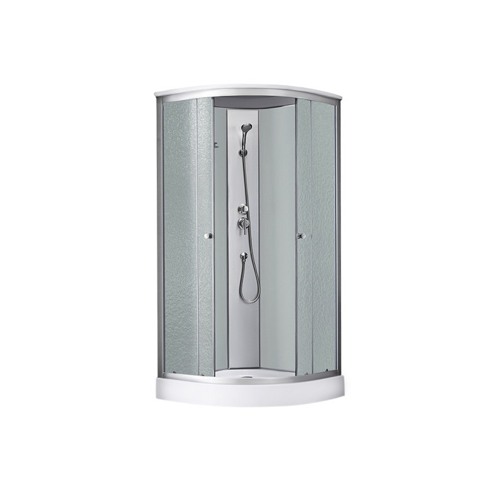 Душовий бокс Kroner KRP Enzo - WD.C.F.F. 90x90 см - це стильне і функціональне рішення для вашої ванної кімнати. Душевой бокс має компактні розміри 90x90 см і форму чверті круга. Ця форма ідеально підходить для ванних кімнат з обмеженим простором. Піддон низький і має висоту всього 145 мм. Виготовлений з високоякісного акрилу, він є міцним і довговічним. Глибина піддону становить 40 мм, забезпечуючи зручність під час прийому душу. Конструкція дверей - розсувна, а матеріал полотна дверей - скло з рифленою текстурою. Це не тільки надає виробу елегантний вигляд, але і забезпечує вашу конфіденційність під час душу. До комплекту душового боксу входить велика кількість необхідних елементів, таких як сифон, двері, ручки, ролики, профіль, кришка, задні стінки, душова панель, змішувач, лійка для ручного душу, лійка для верхнього душу, душовий шланг, кронштейн для ручного душу, шлангове підключення, ніжки, комплект кріпильних деталей та полиця. Це робить його готовим до установки та використання.