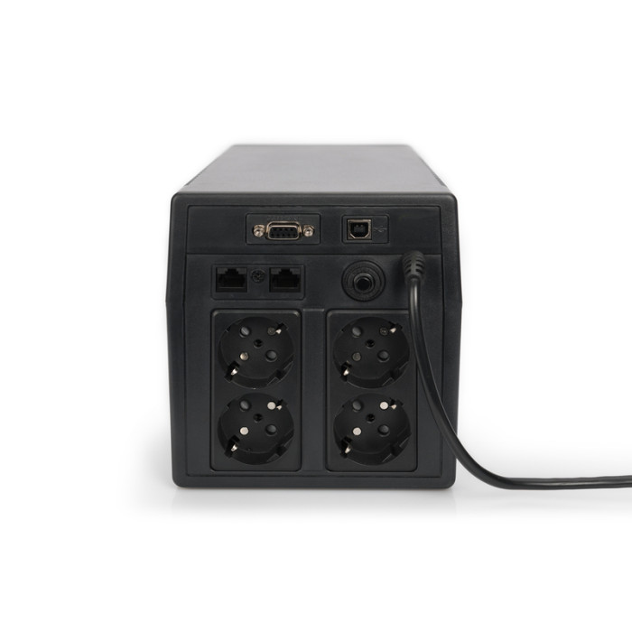 Лінійно-інтерактивне джерело безперебійного живлення DIGITUS 1500VA/900W забезпечує стабільний захист ваших пристроїв від перепадів напруги та втрати даних. Завдяки мікропроцесорному керуванню гарантується висока надійність і ефективність роботи. Модель оснащена LCD-дисплеєм, портами RJ45, RS232, USB та чотирма розетками Schuko. Функції холодного запуску, захисту від перевантаження й енергозбереження роблять його ідеальним рішенням для офісу та бізнесу.