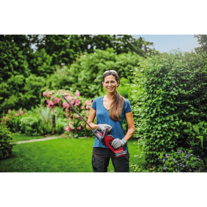 Акумуляторний кущоріз Einhell GC-CH 1840 Li - Solo є дуже ефективним інструментом, що забезпечує гарне обрізання живоплотів, чагарників та кущів на великих площах у саду та парках, де немає підключення до електричної мережі. Кущоріз є пристроєм сімейства Einhell Power X-Change.