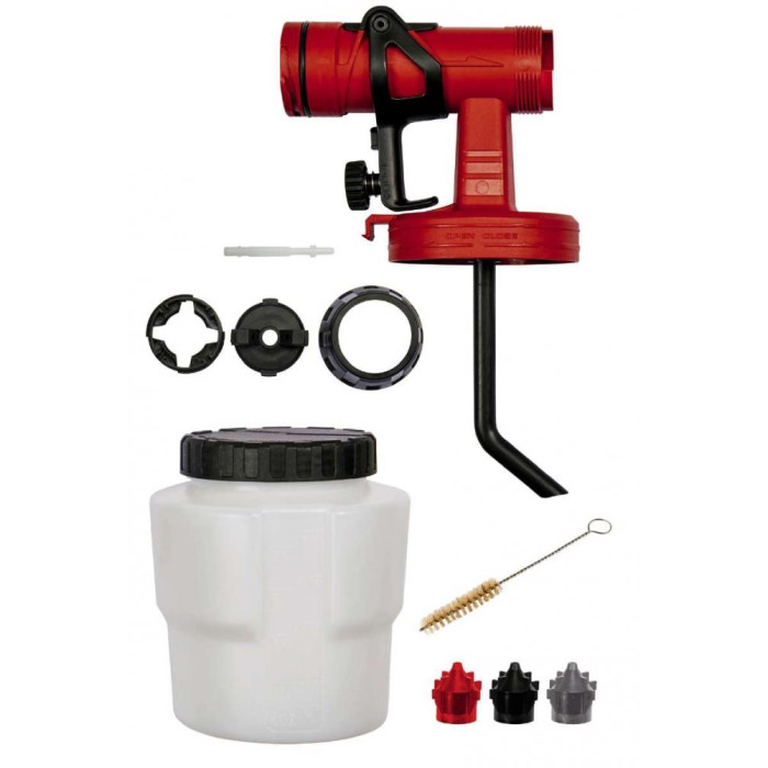 Головна частина фарбопульта + бачок 800 мл + 3 сопла (2 мм - червоне, 2,5 мм - чорне, 3 мм - сіре), щітка для прочищення забірного каналу. Підходить для всіх фарбопультів Einhell TC-SY 400 P, TC-SY 500 P, TC-SY 600 S, TC-SY 700 S.