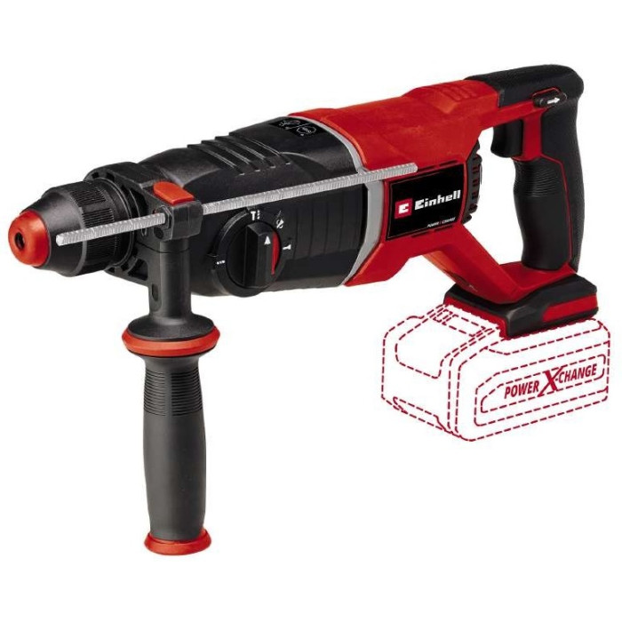Акумуляторний безщітковий перфоратор лінійки Power X-Change system Einhell TP-HD 18/26 D Li BL - Solo серії Professional - справжній універсал. Він поєднує в собі чотири функції в одному інструменті: свердління, ударне свердління та довбання з і без зупинки обертання. Потрібний режим можна встановити за допомогою головного позиційного перемикача. Серцем пристрою є потужний безщітковий двигун Einhell PurePOWER. Цей безщітковий двигун забезпечує більшу потужність і довший час роботи, ніж звичайні двигуни з вугільними щітками. Акумуляторний перфоратор є частиною сімейства Power X-Change, що дозволяє гнучко поєднувати акумулятори, інструменти та зарядні пристрої.