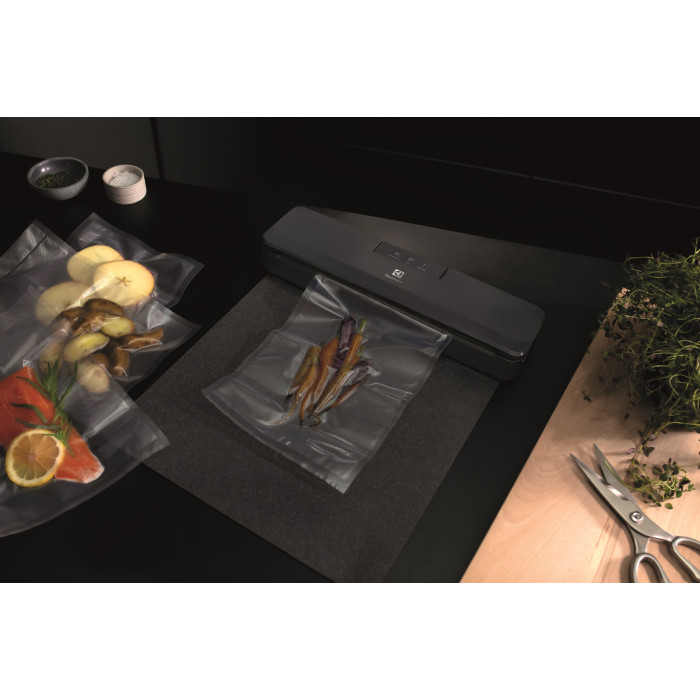 Вакууматор Electrolux для рулонів, пакетів і контейнерів, 80Вт, 30см, електронне керування, +10 пакетів, пластик, чорний (E4VS1-4AG)