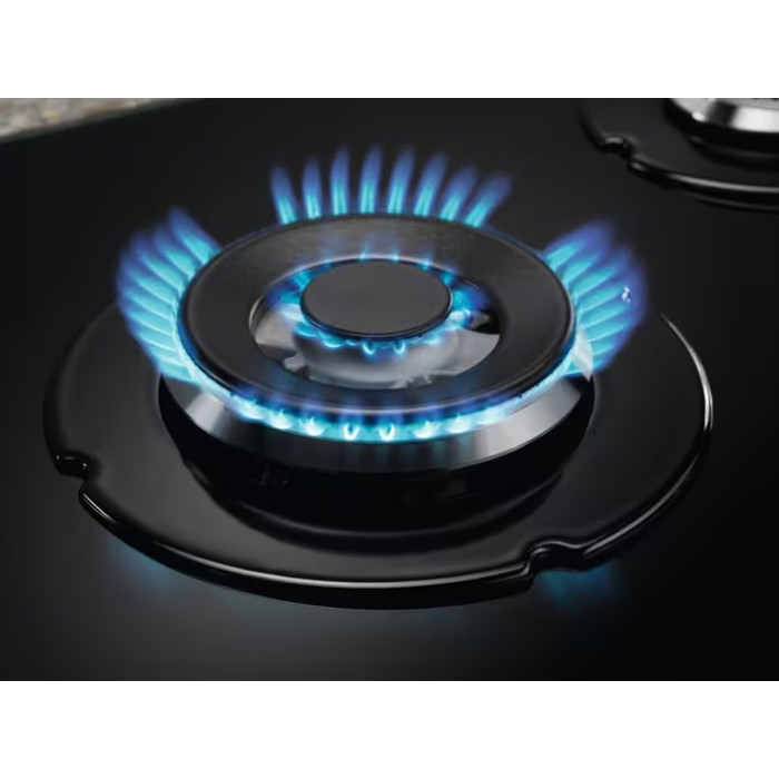 Швидкісна конфорка цієї газової варильної поверхні від Electrolux розроблена для швидкого досягнення дна каструль і сковорідок, забезпечуючи швидше та потужніше нагрівання, при цьому заощаджуючи до 20% на енергії. Потужне нагрівання для повнішого смаку. Пальник «мульти-корона» конфорки вок 4k розроблений для забезпечення більш потужного полум'я, надаючи додаткової потужності для готування справжніх страв азіатської кухні. Елегантність без зусиль. Скляну поверхню варильної панелі легко витирати, підтримуючи охайний та чистий вигляд кухні. Точне регулювання полум'я. Повністю контролюйте варильну поверхню завдяки чутливим газовим кранам. Вони допомагають легко регулювати рівень полум'я, щоб завжди готувати з потрібним рівнем нагрівання. Безпека без роздумів. Газова варильна поверхня оснащена автоматичною функцією безпеки, яка вимикає газ у випадку раптового згасання полум'я.