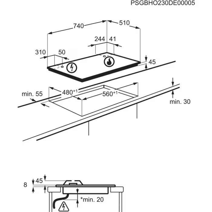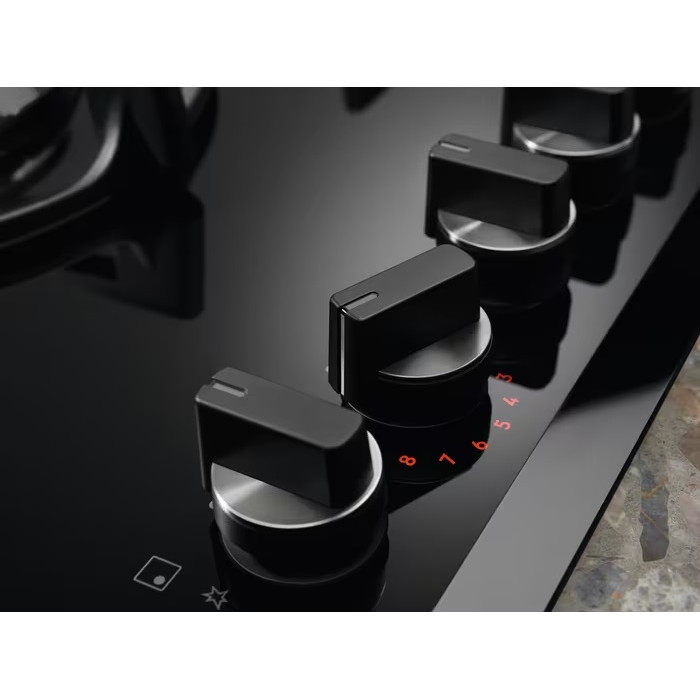 Варильна поверхня Electrolux газова на склі, 75см, чавун, електрон. керування, Hob2Hood, чорний KGG753753K