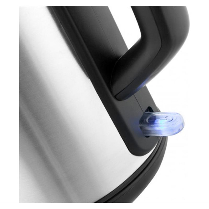 Вимикач живлення чайника знаходиться в основі ручки. Які це дає переваги? First FA-5409-5 автоматично відключається не тільки при закипанні, але і при знятті з підставки. Є індикація роботи, а через прозоре віконце в бічній стінці зручно контролювати кількість налитої води. Кришка відкривається натисканням кнопки на рукоятці. Підставка поворотна, ви можете ставити на неї чайник в будь-якому положенні.