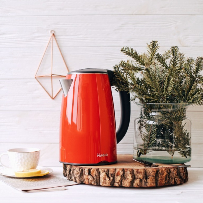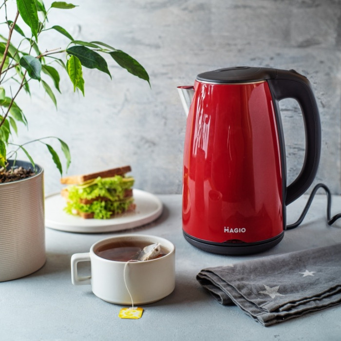 Електрочайник MAGIO об’ємом 1,7 л поєднує стильний дизайн з чудовою якістю і довговічністю.