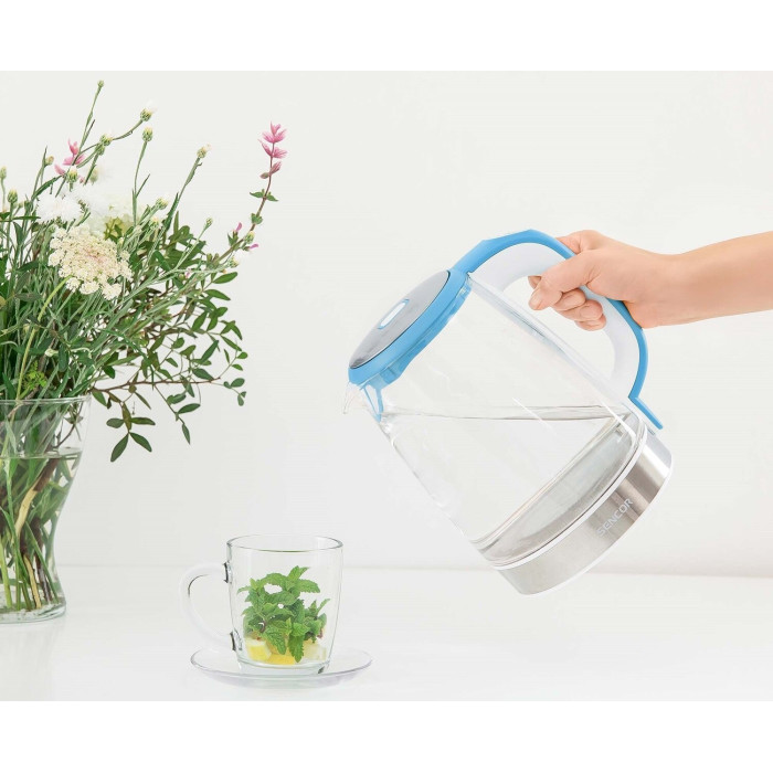 Електрочайник Sencor 2л, Strix, скло, 5 темп.реж, синій