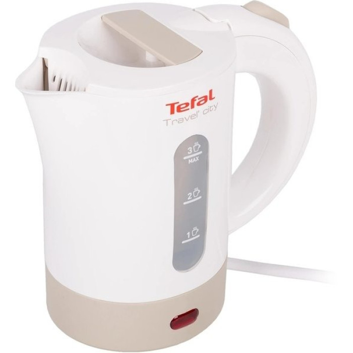 Електрочайник оснащений шкалою для визначення рівня води, міцною кришкою із фіксатором та знімним фільтром для утримання сольових відкладень. Використовуючи спеціальний важіль, можна перемикати напругу електромережі під час подорожей у країнах, де використовуються інші енергетичні стандарти. Для зручності користувачів дорожній чайник Tefal виконаний у єдиній конструкції з контактною підставкою. Пристрій не займе багато місця у вашому багажі та дозволить створити приємну атмосферу під час далеких поїздок чи виїздів на дачу.