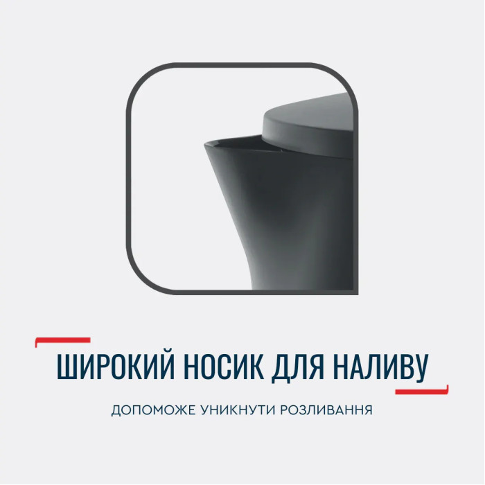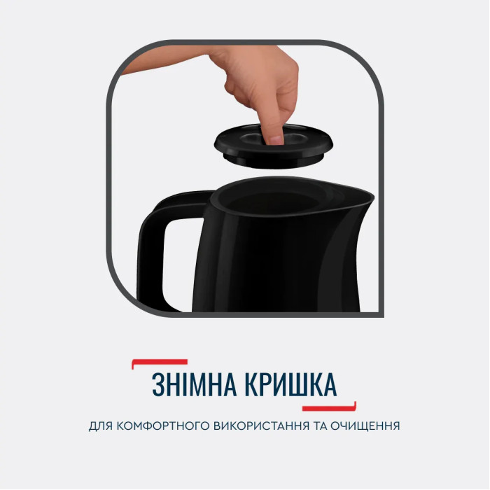 Кришка відкривається одним дотиком, а широка шийка чайника дозволяє легко наливати воду та чистити його зсередини.