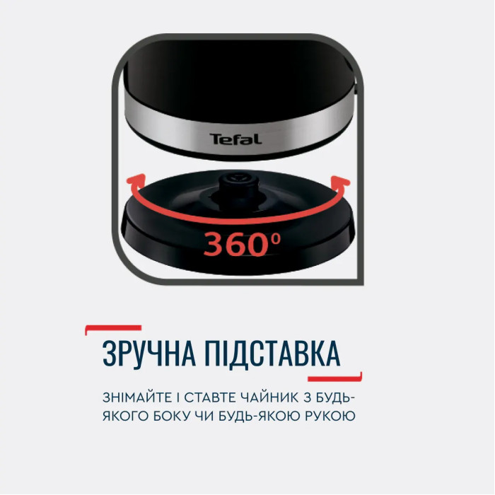 Кругла основа дозволяє повертати чайник на 360° навколо своєї осі та брати його з будь-якого боку.