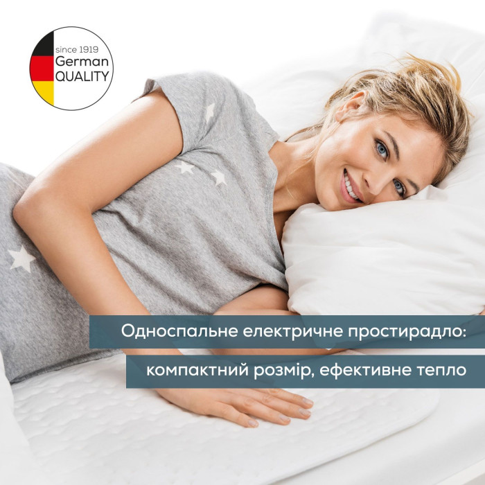 Електропростирадло Beurer TS 19 використовується для додаткового підігріву спального місця під час відпочинку або сну. Розмір 130 × 75 см дозволяє розмістити його на одному спальному місці. Три температурні режими дають можливість регулювати інтенсивність нагрівання залежно від умов у приміщенні. Система безпеки Beurer контролює роботу нагрівального елемента під час використання.