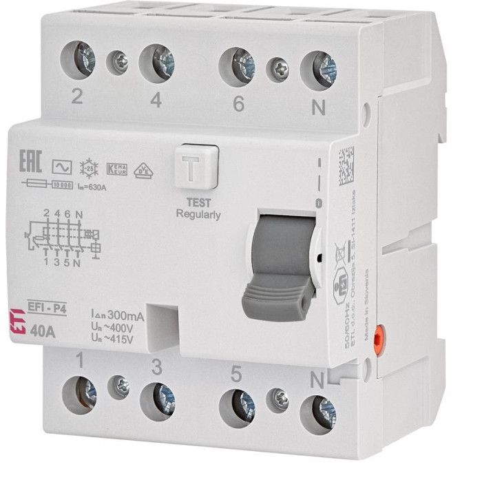 Реле диференційне ETI, (ПЗВ) 4р EFI-P4 40/0,3 тип AC (10kA)