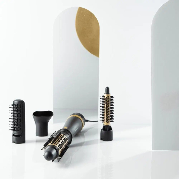 Фен-щітка Rowenta Express Style, 800Вт, 3 режими, іоніз-я, хол. обдув, кераміка, турмалін, чорно-золотий
