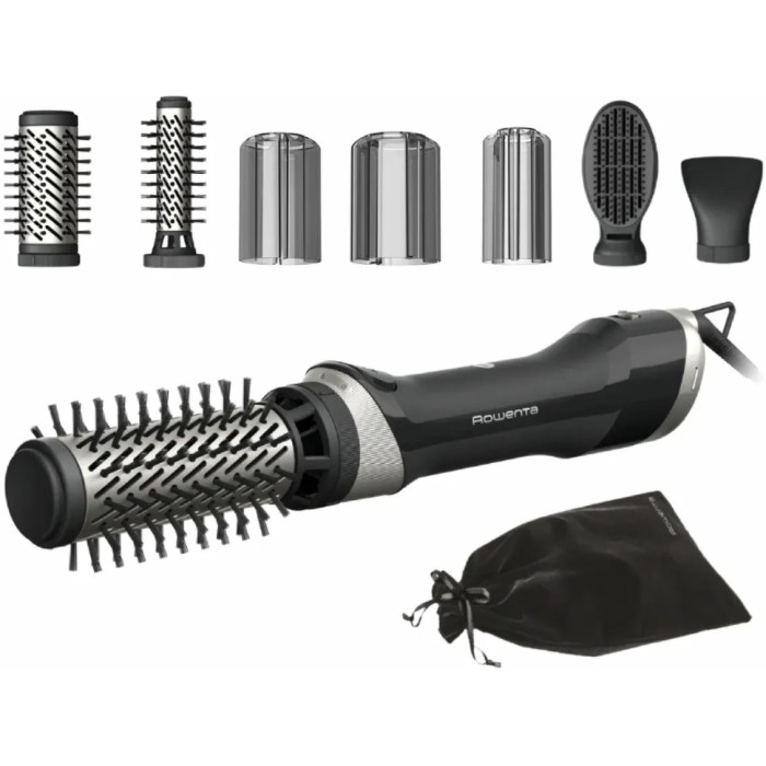 Фен-щітка Rowenta Renewal Brush Active, 1000Вт, 3 режими, іоніз-я, хол. обдув, оберт. насадка, 5 насадок, кераміка, чорний