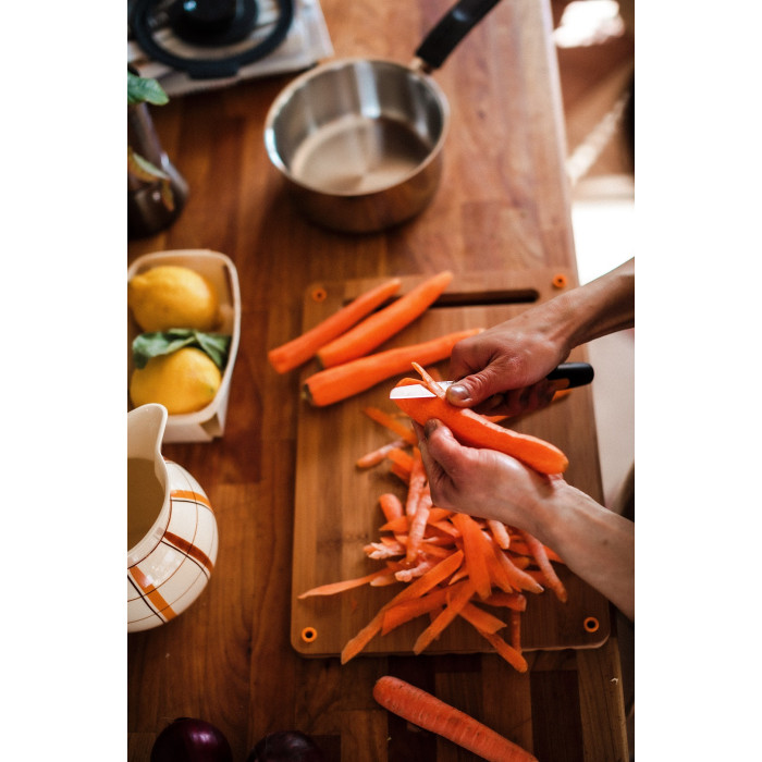 Ніж для коренеплодів з прямим лезом Fiskars Functional Form. Дуже добре підходить для чищення фруктів і овочів.