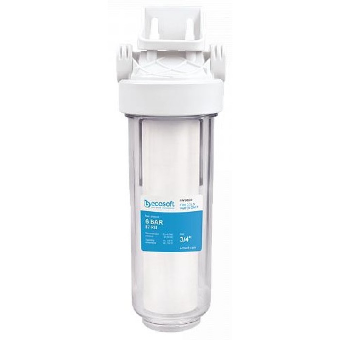Фільтр магістральний Ecosoft 10", прозора колба, підключення 3/4, з поліпропіленовим картриджем