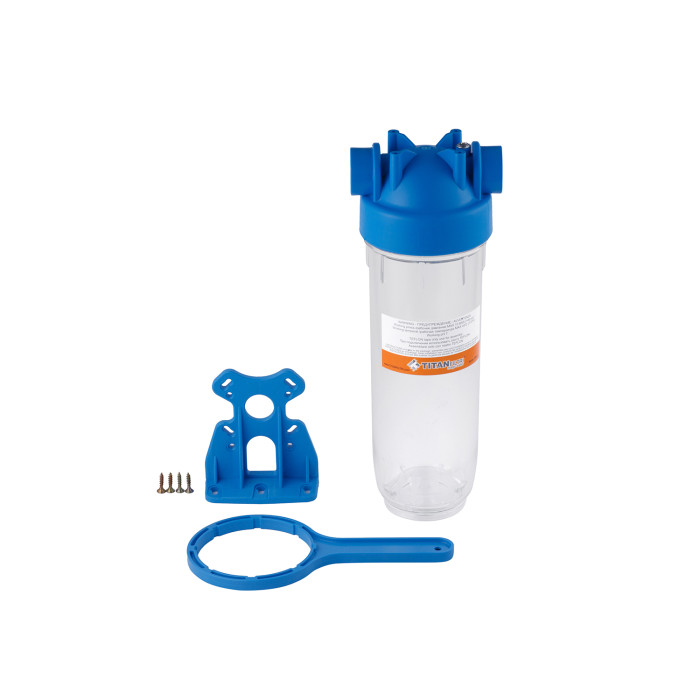 Цей магістральний фільтр Titan HT10-3/4" призначений для очищення питної води та захисту різного обладнання, такого як труби, насоси, пом'якшувачі води, зворотноосмотичні установки та інша техніка. Прозора пластикова колба фільтра забезпечує можливість контролювати зовнішній вигляд та загальний стан змінного картриджа без необхідності його розбирання.