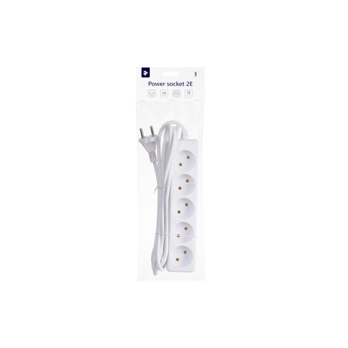 Фільтр живлення 2Е (2E-U05M3) 5 розетки, 3 м, білий