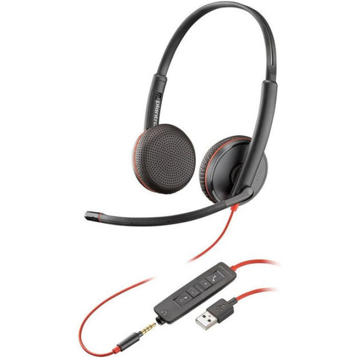 Гарнітура комп'ютерна стерео On-ear Poly Blackwire 3225 HS, USB-A, 3.5 мм, всеспрямований, чорний
