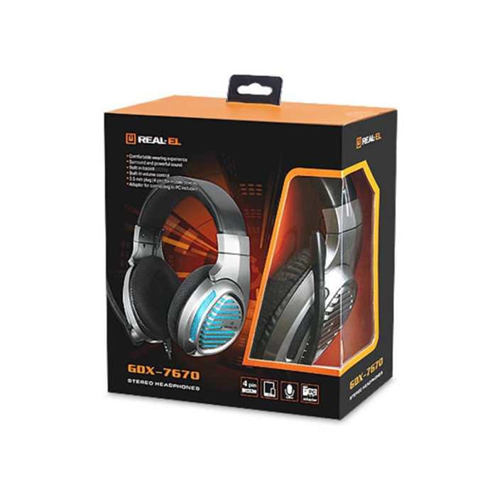 Стереонавушники з мікрофоном REAL-EL GDX-7670 стануть справжнім подарунком любителям відеоігор. Легка міцна конструкція, регульоване наголів"я, м"які тканинні амбушюри забезпечать зручність та комфорт під час ігор та прослуховування музики. На кабелі знаходиться зручний пульт управління. Підійде для ігор як на ПК (з перехідником mini-jack 2 * 3,5 мм), так і для мобільного гейминга (mini-jack 3,5 мм - 4 pin).