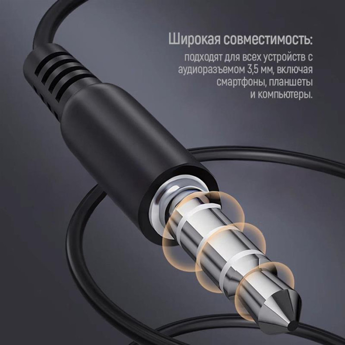 Ці дротяні навушники оснащені роз’ємом 3,5 мм, а довжина кабелю становить 1,2 метри. На кабелі розташована панель керування з трьома кнопками та високоякісний мікрофон, що забезпечує чітку передачу голосу під час розмови та знижує небажані шуми.