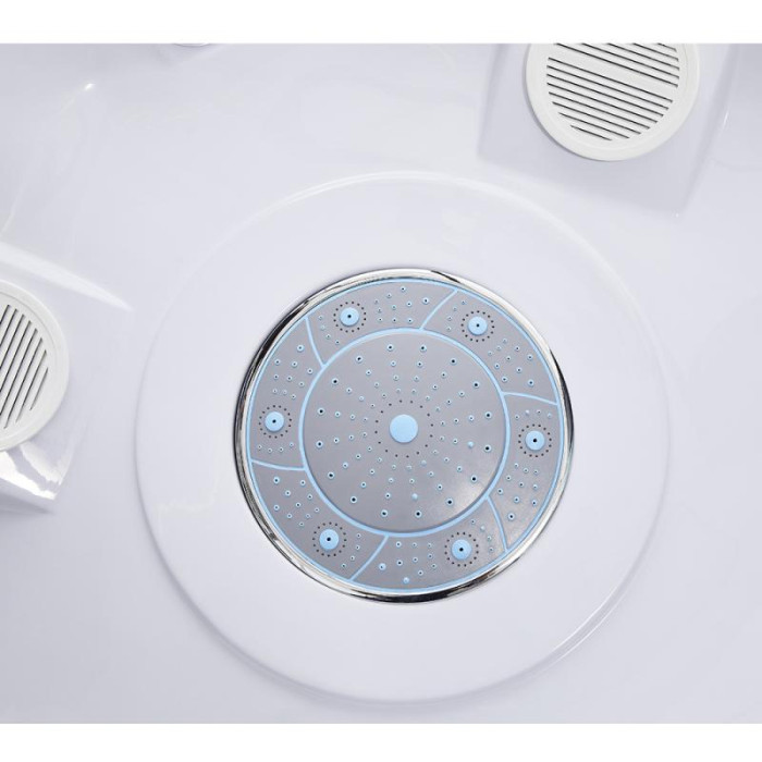 Вбудоване сидіння. Кількість душових форсунок: 6. Прямокутна скляна полиця.