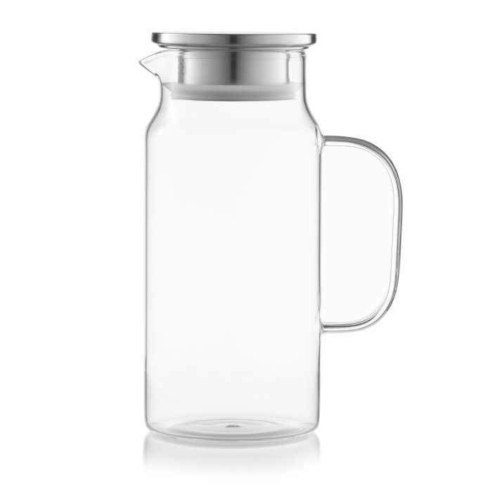 Глечик виготовлено з екологічного боросилікатного скла, яке вирізняється міцністю і стійкістю до перепадів температури. Завдяки термостійкості виробу, його можна використовувати як для крижаних лимонадів, так і для подавання гарячих напоїв, наприклад, трав’яного чаю. Кришку з нержавіючої сталі, доповнено силіконовим ущільнювачем, завдяки чому будь-який напій буде зберігати свіжість і аромат. Об’єм моделі – 1 200 мл, тож це ліпший вибір для сімейних обідів і свят, вечірок і зустрічей у колі друзів. Після використання його легко очистити в посудомийній машині, що зумовлює практичність для повсякденного вжитку.