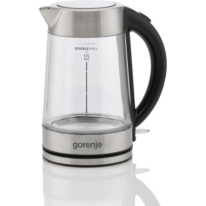 Gorenje Електрочайник 1.7л, 2,200 Вт, strix контроль, скло, нерж