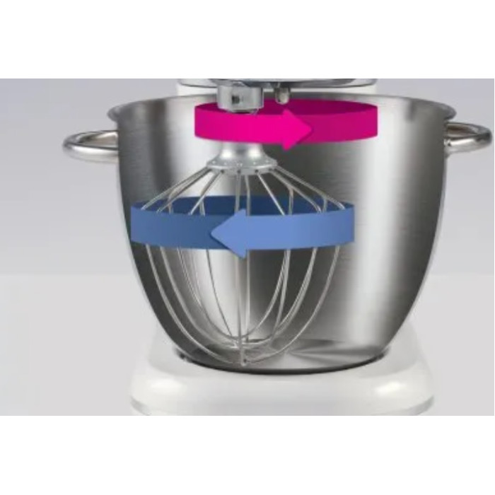 Довірте роботу висококваліфікованому помічникові. Насадка для змішування обертається навколо своєї осі, а головка для змішування обертається в протилежному напрямку, забезпечуючи ідеальне рівномірне змішування всіх інгредієнтів. У тісті залишається повітря, завдяки чому воно м’яке та податливе. Вам потрібно лише вибрати правильну насадку для улюбленого рецепта та насолоджуватися відмінним результатом. Кухонні помічники спрощують процес готування для вас. Ідеальний вибір для кожної кухні із вічним поєднанням чорного і білого.