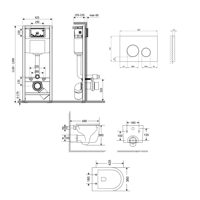 11,9 – інсталяція; 0,35 – панель змиву; 27 – унітаз