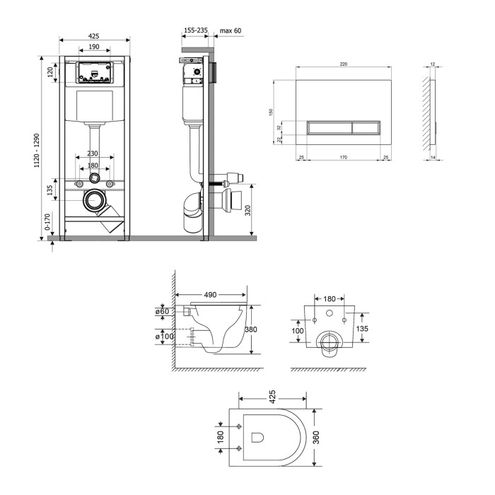 11,9 – інсталяція; 0,38 – панель змиву; 27 – унітаз