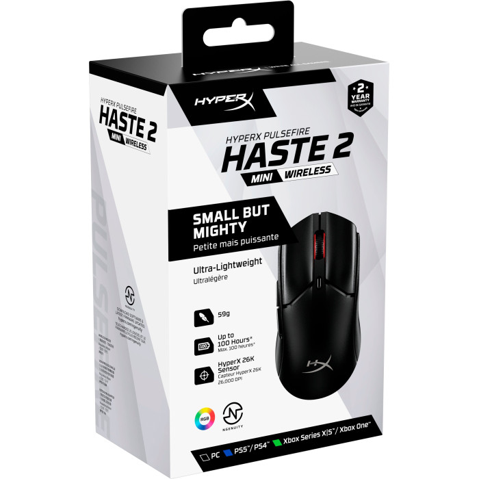 HyperX Миша Pulsefire Haste 2 mini, RGB, USB-A/WL/BT, чорний