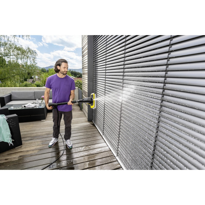 Мийна щітка "3 в 1" Karcher WB 7 Plus дозволяє виконувати три важливі функції. Нанесення піни, видалення стійких забруднень струменем високого тиску або ретельне і водночас дбайливе очищення м'якою щіткою - все це можна робити без заміни приладдя. Необхідна функція просто вибирається важелем, встановленим на рукоятці щітки. Завдяки цьому мийна щітка має універсальні можливості, економить час, гарантує комфортну роботу і чудовий результат чищення - навіть під час обробки таких чутливих матеріалів, як скло, пластик або лакофарбове покриття. При цьому вбудований бачок для засобу для чищення забезпечує тривалу роботу без дозаправки.