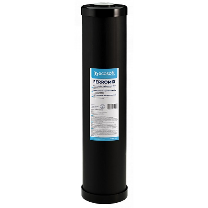 Усередині картриджа для видалення заліза Ecosoft 4,5 "х20" міститься суміш каталітичного сорбційного матеріалу, високоякісного активованого вугілля і коректора рН. Картридж знижує вміст заліза і його домішок в свердловині і водопровідній воді, а також зменшує концентрацію нафтопродуктів, пестицидів, коригує колір і запах води. Корпус картриджа виготовлений з чистого європейського первинного харчового пластику. Підходить до фільтрів інших виробників зі стандартним типорозміром 4,5 "х20". Картридж встановлюється в колби типу BB20.