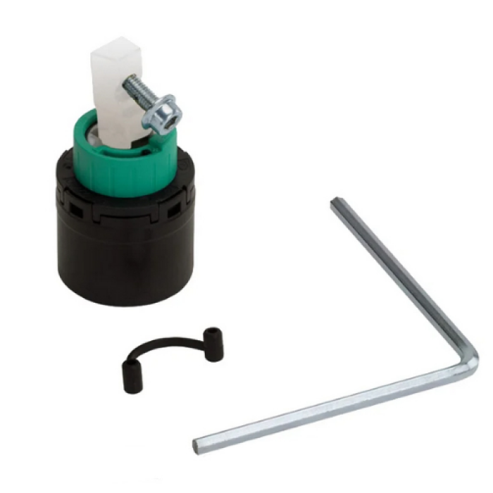 Картриджі від HANSGROHE належить до категорії комплектуючих для змішувачів. Виконаний з високоякісної кераміки, що забезпечує довговічність і надійність в процесі експлуатації. Складається з двох пластин, які труться одна об одну. Таким чином, змішувач починає працювати. До їх функцій також слід віднести можливість регулювати напір і температура води, що подається.