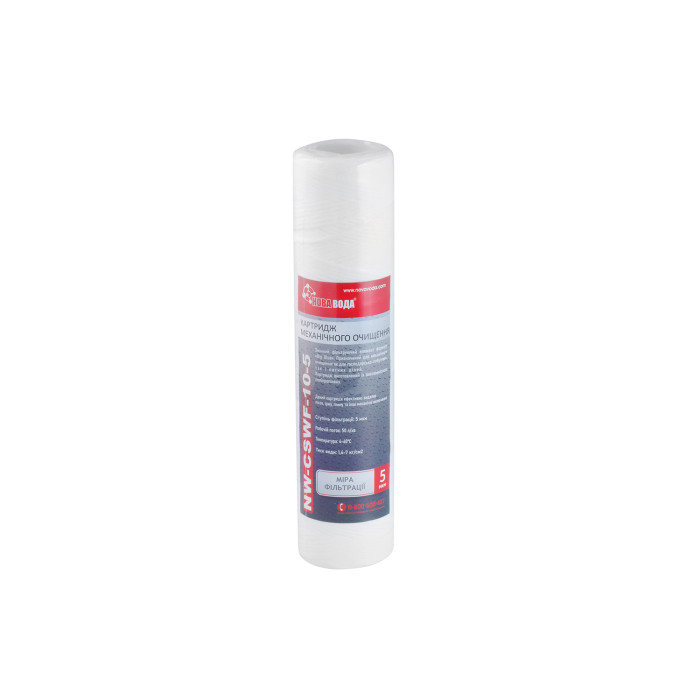 Картридж CSWF-10-5 мкм - це надійне рішення для тих, хто цінує якісне очищення води від механічних забруднень без впливу на її смак та запах.
