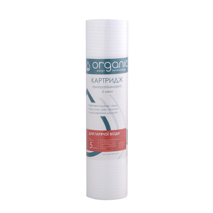 Картридж поліпропіленовий Organic DM10PP5Н використовується для видалення з гарячої води більших механічних домішок. Як фільтруючий матеріал застосовується спінений поліпропілен.