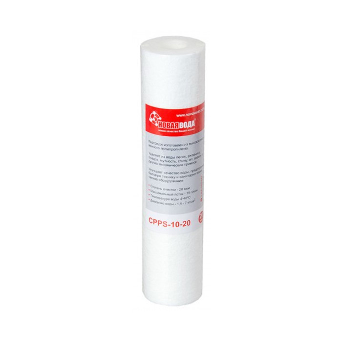 Картридж поліпропіленовий Нова Вода CPPS-10-20 мкм.Картридж CPPS-10-20 мкм є змінним фільтрувальним модулем, спеціально розробленим для використання в системах зворотного осмосу і проточних фільтрах. Його основне признач... Читати далі...