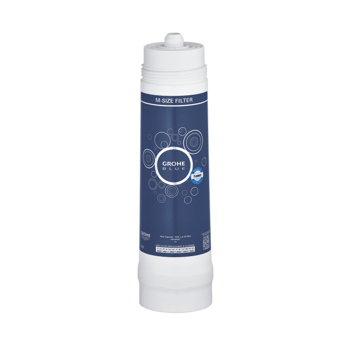 Для систем Grohe Blue випускаються фільтри трьох типів з різним ресурсом фільтрації, що дозволяє підібрати рішення для отримання ідеальної води з водопровідної води різного ступеня жорсткості. Кожен фільтр Grohe Blue використовує багатоступеневий процес фільтрації для очищення водопровідної води та покращення її смаку. На етапі фільтрації з активованим вугіллям відбувається видалення хлору, потім високопродуктивний іонообмінник затримує сполуки вапна та металів. В результаті Ви отримуєте очищену питну воду з неповторним смаком.