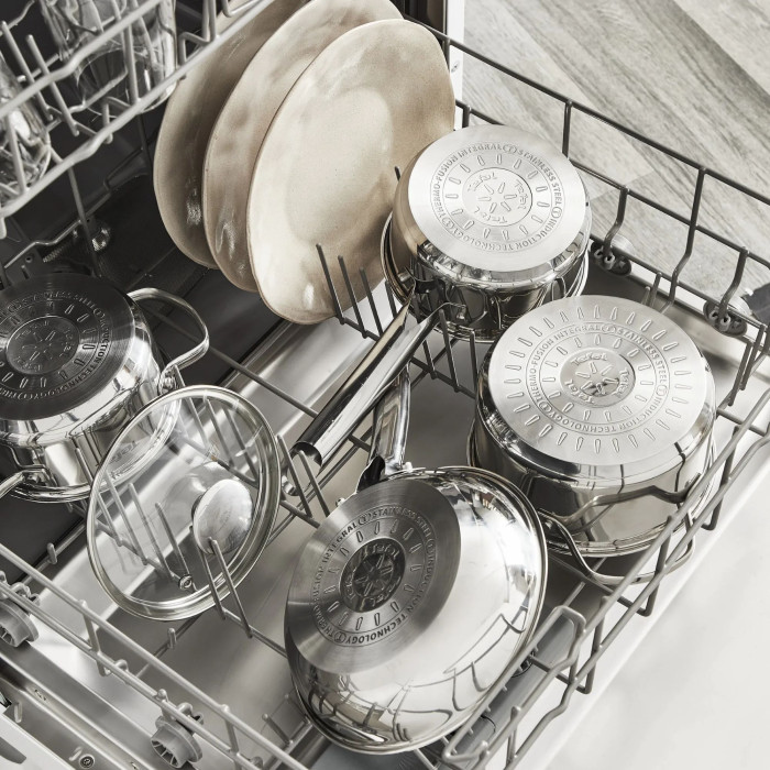 Каструля Tefal Minis діаметром 16 см та об’ємом 1,5 л створена для щоденного приготування невеликих порцій. Корпус з нержавіючої сталі з багатошаровим дном забезпечує рівномірний розподіл тепла на всіх типах плит, включно з індукцією. Скляна кришка та внутрішні вимірювальні позначки роблять процес приготування більш контрольованим і зручним, а можливість миття в посудомийній машині спрощує догляд.