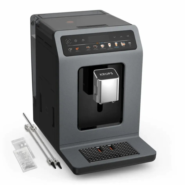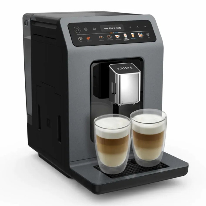 Кавомашина Krups Evidence Hot & Cold 2.3л, зерно, автомат.капучинатор, ОLED диспл, авторецептів - 18, сіро - чорний