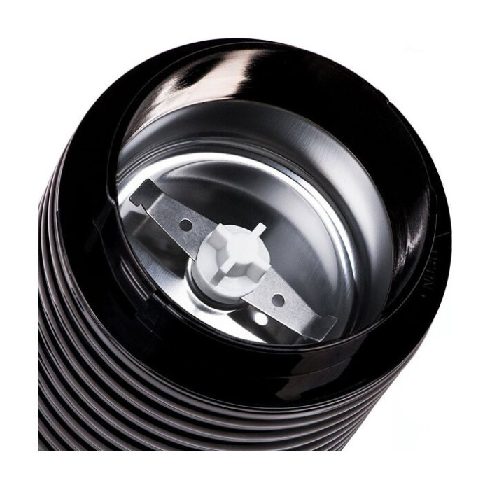 Кнопка включення знаходиться на корпусі кавомолки First FA 5482-2. Вона працює в імпульсному режимі - до тих пір, поки Ви не відпустите кнопку. Тому ступінь помолу зерен регулюється Вами. Чим довше працює кавомолка, тим тонший рівень помолу. Потрібно враховувати, що швидкість помолу дуже висока, і в його процесі, частинки зерен вдаряються об ніж, і один об одного, що призводить до їх зайвого нагрівання. Перетримавши час помолу, Ви ризикуєте "перепалити" каву, і як результат - отримати гіркий смак і пропалений аромат. Рішенням є уривчастий помол зерен, з короткими паузами.