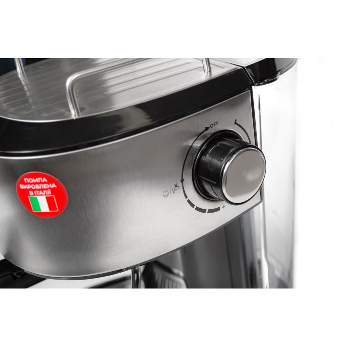 Тиск помпи становить 15 бар - це найоптимальніший тиск для помпи. І правильне по відношенню, до тиску який необхідно, щоб проходило через холдер (ріжок) для приготування смачного еспресо з щільною пінкою і без присмаку підгорілого кави.