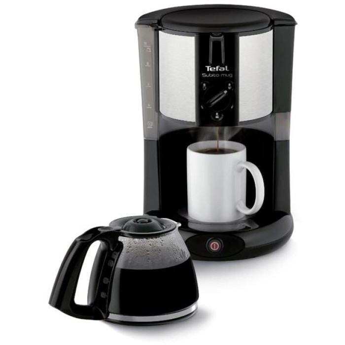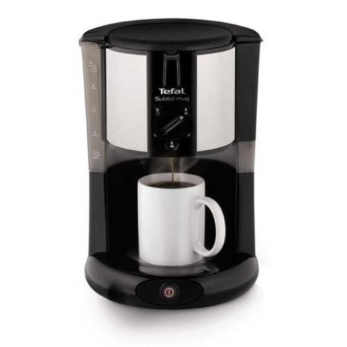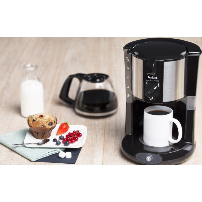 Крапельна кавоварка SUBITO MUG CM290838 від компанії Tefal потужністю 1000 Вт оснащується резервуаром для води ємністю 1.25 л. Прилад обладнаний знімним багаторазовим фільтром - вам не доведеться користуватися паперовими фільтрами для кави, а також протикрапельною системою.