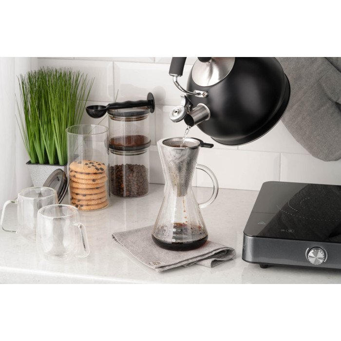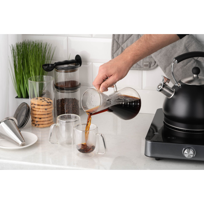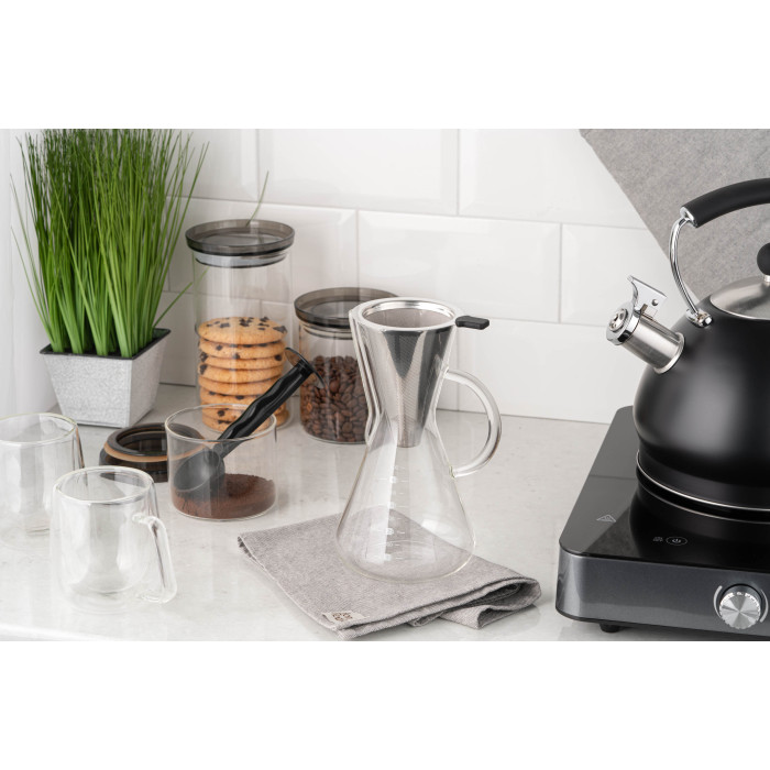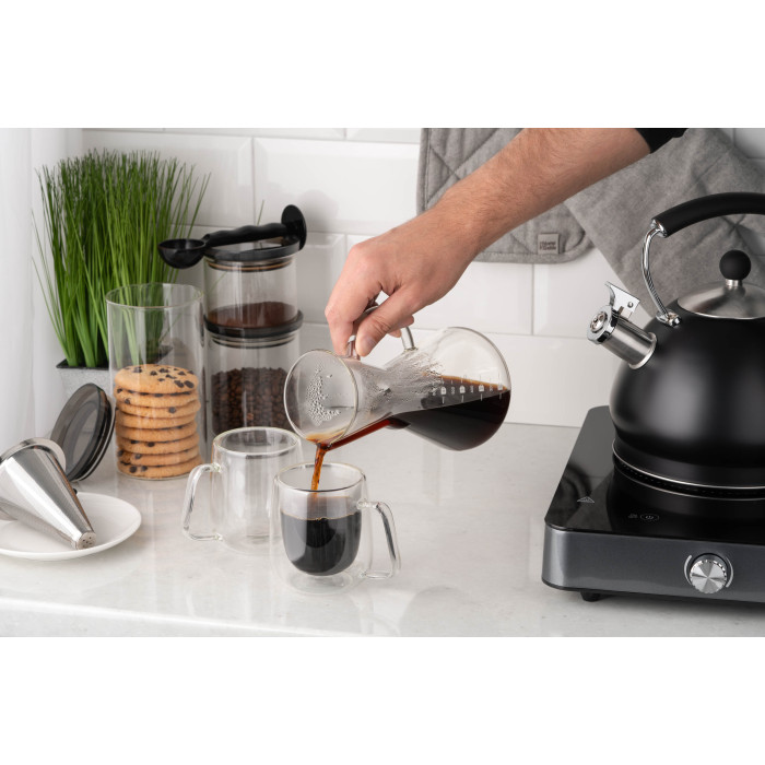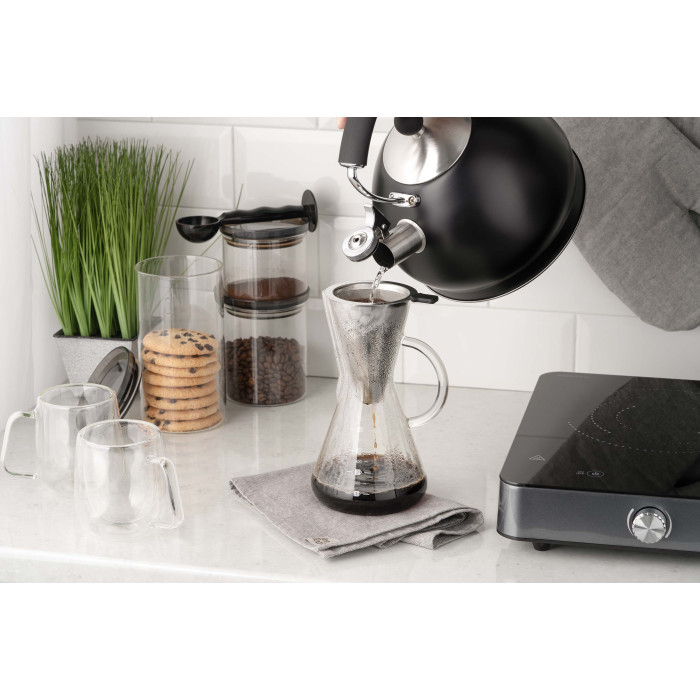 Кемекс для заварювання кави з фільтром ARDESTO Black Mars 600мл, боросилікатне скло, нержавіюча сталь, прозорий