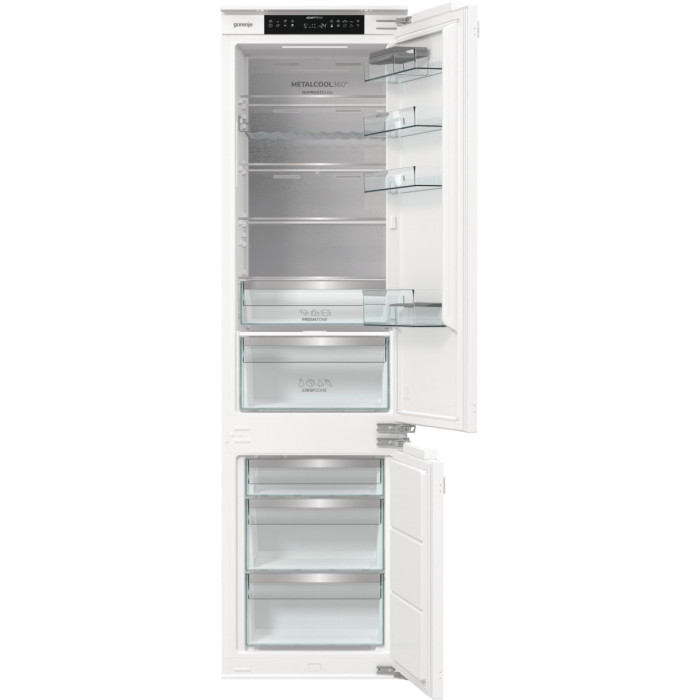 Вбудований холодильник Gorenje NRKI519E82WF з нижньою морозильною камерою поєднує інтелектуальне керування, гнучку організацію простору та низький рівень шуму. Загальний об’єм 284 л оптимально підходить для щоденного збе... Читати далі...