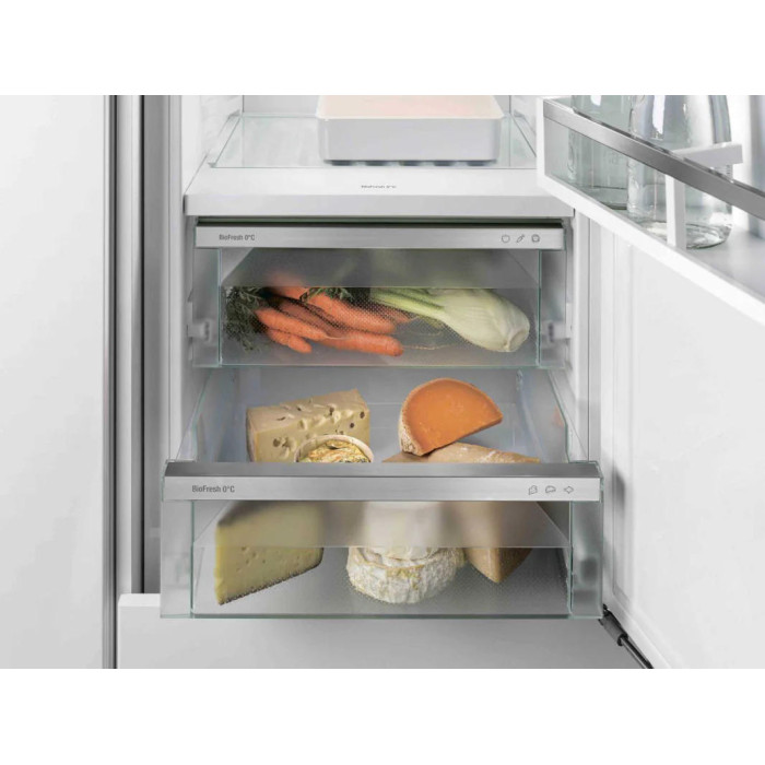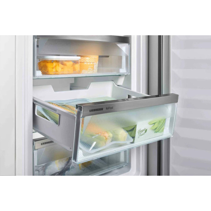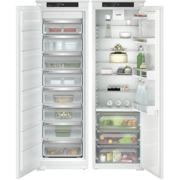 Вбудований холодильник Liebherr Side-by-Side IXRFS 5125 22 Plus пропонує загальний корисний об'єм 500 літрів, з холодильним відділенням 195 л, зоною BioFresh 96 л та морозильним відділенням 209 л. Система No Frost у обох камерах поєднується з динамічним охолодженням, а зона BioFresh з трьома контейнерами підтримує оптимальну вологість для тривалого зберігання свіжих продуктів. Сенсорне керування з внутрішньою цифровою індикацією та функціями SuperFrost, VarioSpace забезпечує зручне налаштування та гнучкість у використанні простору.