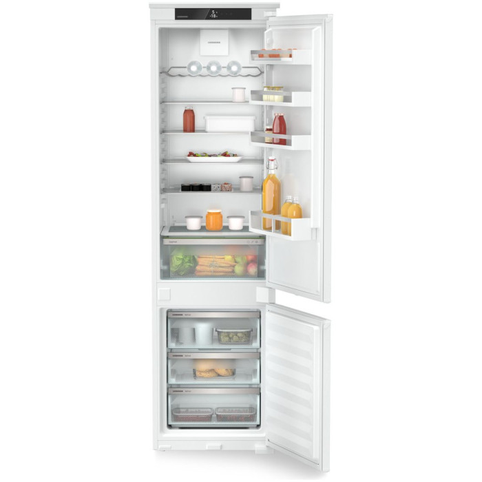 Вбудований холодильник Liebherr ICNSd 5603 Pure має об’єм 275 л (холодильне відділення – 215 л, морозильне – 70 л). Оснащений технологіями NoFrost, DuoCooling, SuperCool та SuperFrost, він забезпечує зручне зберігання продуктів. Має 2 температурні зони, сенсорне управління та внутрішній дисплей.