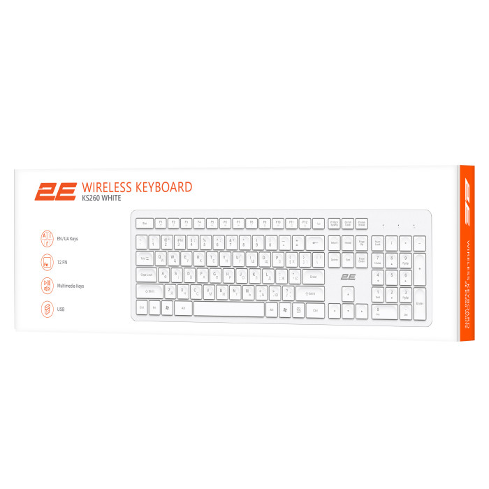 Клавіатура бездротова 2E KS260 WL EN/UKR White (2E-KS260WWH_UA)